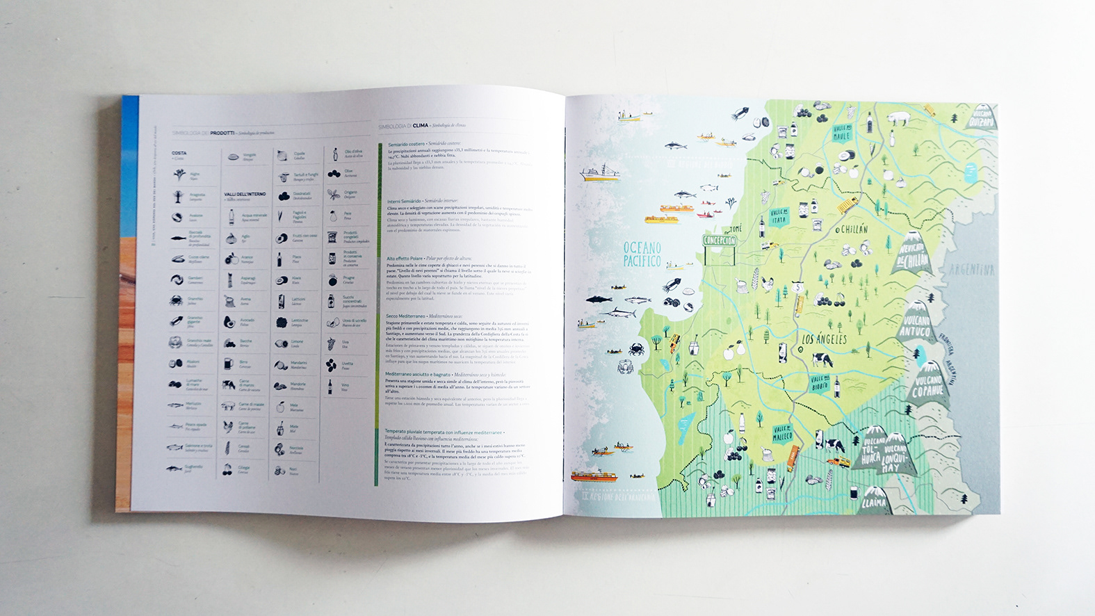 Diseño de la portada y algunas paginas del libro "Cile una Dispensa nel Sud del Mondo" (Chile, Una Despensa al Sur del Mundo) Cliente: Pabellón de Chile en la Expo Milán Ilustraciones: Mathias Sielfeld (www.oyemathias.cl) Trabajo realizado en Draft Diseño (www.draft.cl)