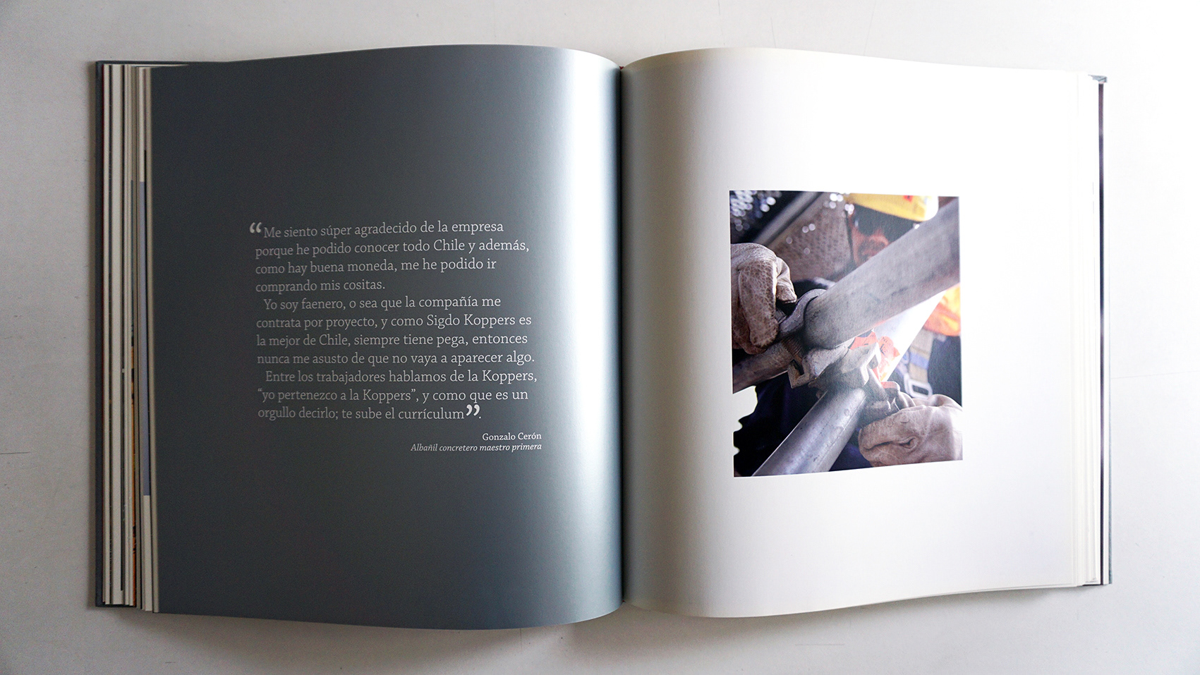 Diseño y diagramación del libro 50 años Sigdo Koppers, Ingeniería y Construcción. Cliente: SigdoKoppers Ingeniería y Construcción Trabajo realizado Draft Diseño (www.draft.cl)